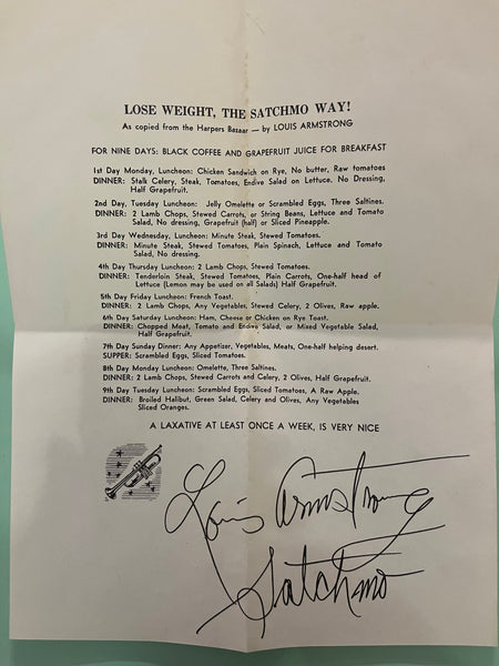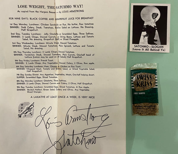 HISTORIC Curiosity : Louis Satchmo Armstrong - Sample SWISS KRISS manufactured letter / CARD and SAMPLE - SWISSKRISS - MEMORABILIA [mass printed signature]