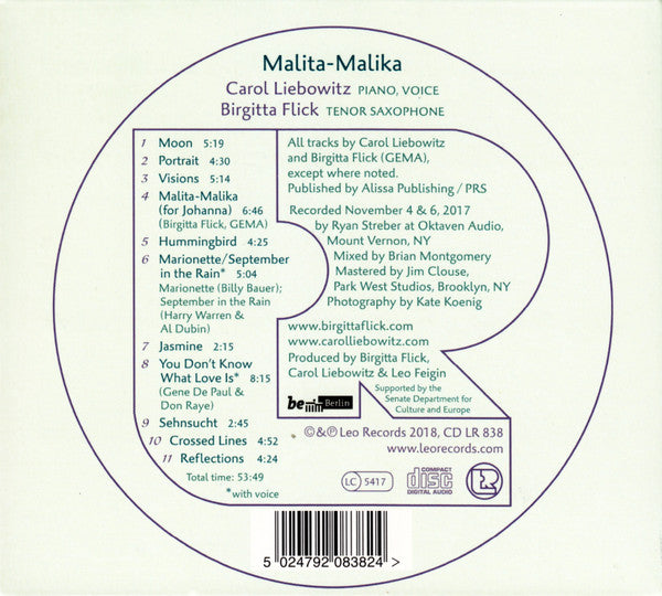 CAROL LIEBOWITZ [piano/voice] - BRIGITTA FLICK [tenor saxophone] - MALIKA-MALIKA - LEO 838 - CD