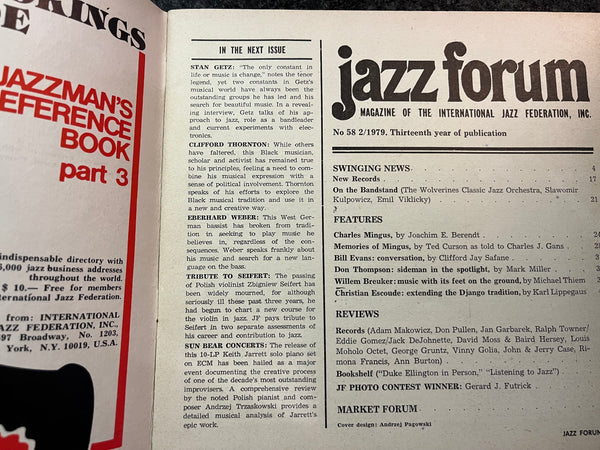 JAZZ FORUM MAGAZINE - FEBRUARY 1979 - JAZZ FORUM MAGAZINE - # 58 - CHARLES MINGUS - BILL EVANS - WILLEM BREUKER - CHRISTIAN ESCOUDE - [58 pages] - Back Issue
